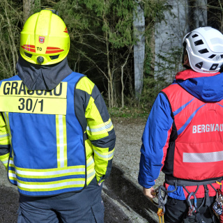 "Gleitschirmflieger in Baum gelandet" lautete das Übungsszenario bei der Übung mit der Bergwacht. →