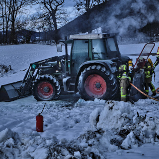 In unmittelbarer Nähe eines landwirtschaftlichen Gebäudes kam es zum Brand eines Traktors. Beim Eintreffen unserer Kräfte hatten die Kameraden aus Bergen bereits mit den Löscharbeiten begonnen. Wir unterstützten den Einsatz durch die Bereitstellung von Löschwasser.