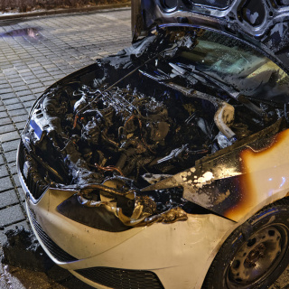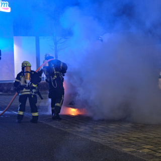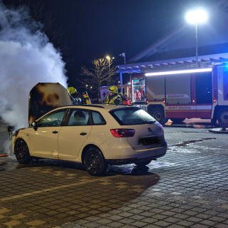 Ein PKW war im Gewerbegebiet durch einen techn. Defekt in Brand geraten.