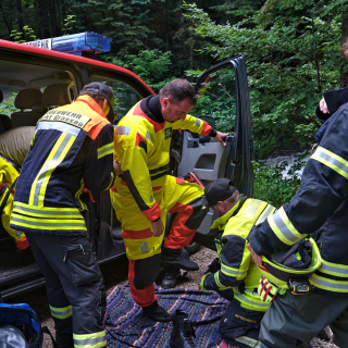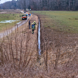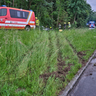 Der Fahrer blieb dabei nahezu unverletzt. Wir unterstützten den Rettungsdienst bei der Befreiung aus dem PKW und beseitigten die ausgelaufenen Betriebsstoffe auf dem Gewässer.