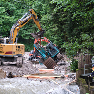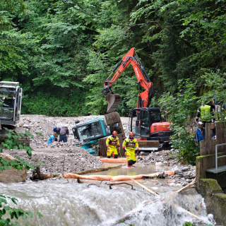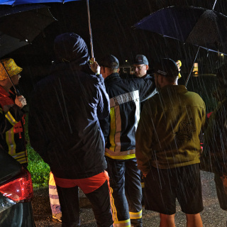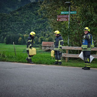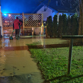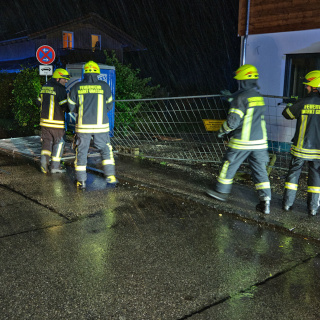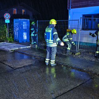 Auf Grund eines Wasserrohrbruches drohte Wasser in ein Wohngebäude einzudringen. Durch gezielte Sicherungsmaßnahmen, darunter das Errichten einer Sandsackbarriere und das Ableiten des Oberflächenwassers mittels Tauchpumpen, konnte ein Eindringen des Wassers ins Gebäude erfolgreich verhindert werden.