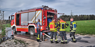 Eine Ölspur durch den Ortsteil Mietenkam musste abgestreut werden.
