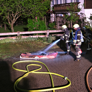 Das Feuer konnte mit Unterstützung der Feuerwehren aus Marquarstein und Staudach schnell gelöscht werden. Die Sicherungsmaßnahmen dauerten bis zum Nachmittag.