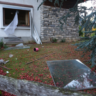 Offensichtlich kam es bei einem Brand in einem Gebäude zu einer Verpuffung.