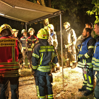Erste kleinere Einsätze in der Nacht und am Tag eine Fahrzeugsicherung in einem Bach, dazu Verkehrsabsicherung für die Kameraden aus Übersee →