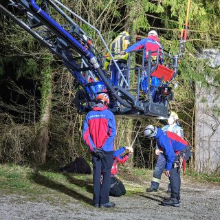 "Gleitschirmflieger in Baum gelandet" lautete das Übungsszenario bei der Übung mit der Bergwacht. →