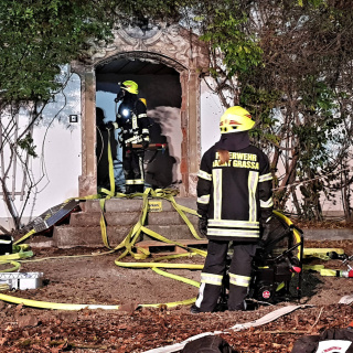 Der Löschzug der Feuerwehr Grassau führte sofort den Erstangriff durch, mehrere Trupps drangen unter schwerem Atemschutz im Innenangriff zur Menschenrettung und Brandbekämpfung ins Gebäude vor. Flure und Klassenzimmer im Erdgeschoß wurden ebenso durchsucht wie der verwinkelte Keller mit seinen Technik- und Lagerräumen. Die Belüftung des Eingangsbereiches wurde vorbereitet, gleichzeitig entstand die Wasserversorgung für die eingesetzten Angriffstrupps.